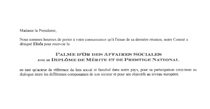 Elisfa reçoit la Palme d’Or des Affaires sociales du Comité de France